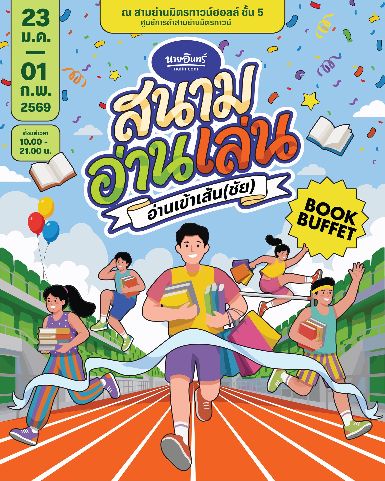 ปักหมุดรอไว้เลย! 23 มกราคมนี้ เตรียมตัวมาเช็คอินที่สามย่านมิตรทาวน์ ฮอลล์ ชั้น 5 แล้วสนุกไปกับการล่าหนังสือในราคาสุดช็อกที่หนึ่งปีมีครั้งเดียวเท่านั้น ใครจะไปคว้าบุฟเฟต์ 199 บาท หรือเล่มไหนที่เป็นที่สุดของปี เตรียมตัวให้พร้อมแล้วไปอ่านให้เข้าเส้นชัยด้วยกันครับ! ขอบคุณข้อมูลจาก |
